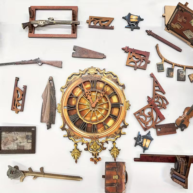 Każdy zestaw zawiera wstępnie wycięte i pomalowane elementy drewniane, instrukcję krok po kroku, komponenty oświetleniowe LED oraz wszystkie potrzebne materiały tematyczne.