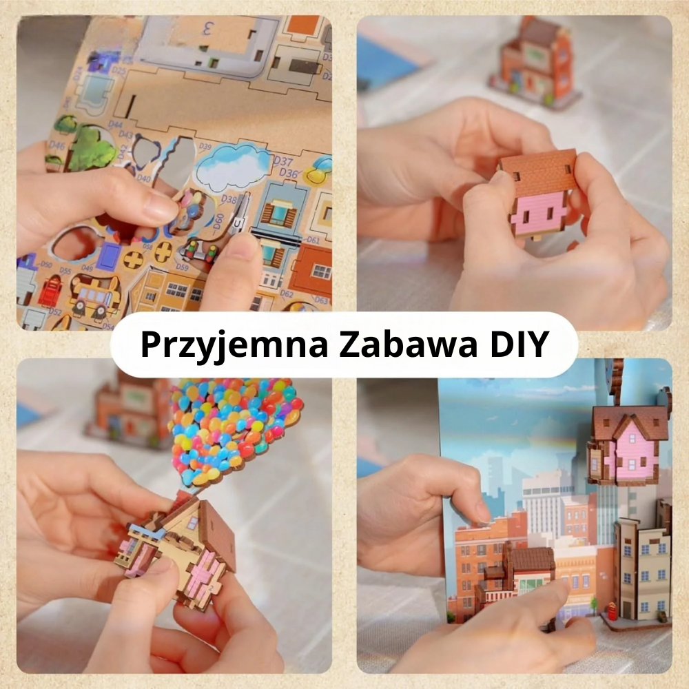 Każdy zestaw zawiera wstępnie wycięte i pomalowane elementy drewniane, instrukcję krok po kroku, komponenty oświetleniowe LED oraz wszystkie potrzebne materiały tematyczne.